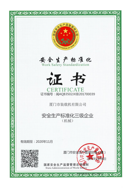 廈裝安全三級標(biāo)準(zhǔn)化證書